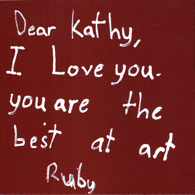Kathy Anderson’s School for Young Artists introduces people into the space of free play inside an informed and fantastic field of safe exploration. … Kathy’s think-tank for young minds helped me rely on my own process based life, career and continued trajectory. … Her lessons have carried on throughout the years. I still have a [...]... [ Join the Discussion, Ask Questions, Introduce a New Topic! ]