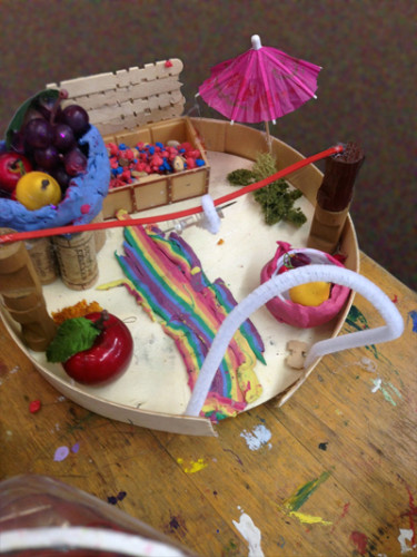 Butterfly Girl is a partial-scholarship student her. Her parents have told me that she dearly loves to come to art class and from what I see when she is here, she is deeply involved. Here biggest passion over many classes is creating habitats for Puffles. Puffles, little fuzzy pom-pom creatures with big wiggly eyes, have had any number of incarnations here at the school. Somehow the keep on being recreated and Butterfly Girl has taken to them passionately. I will be adding the various environments she is making and adding to as time goes by. Needless to say, this is a child with an enormous capacity to stay on task over a lengthy period of time.